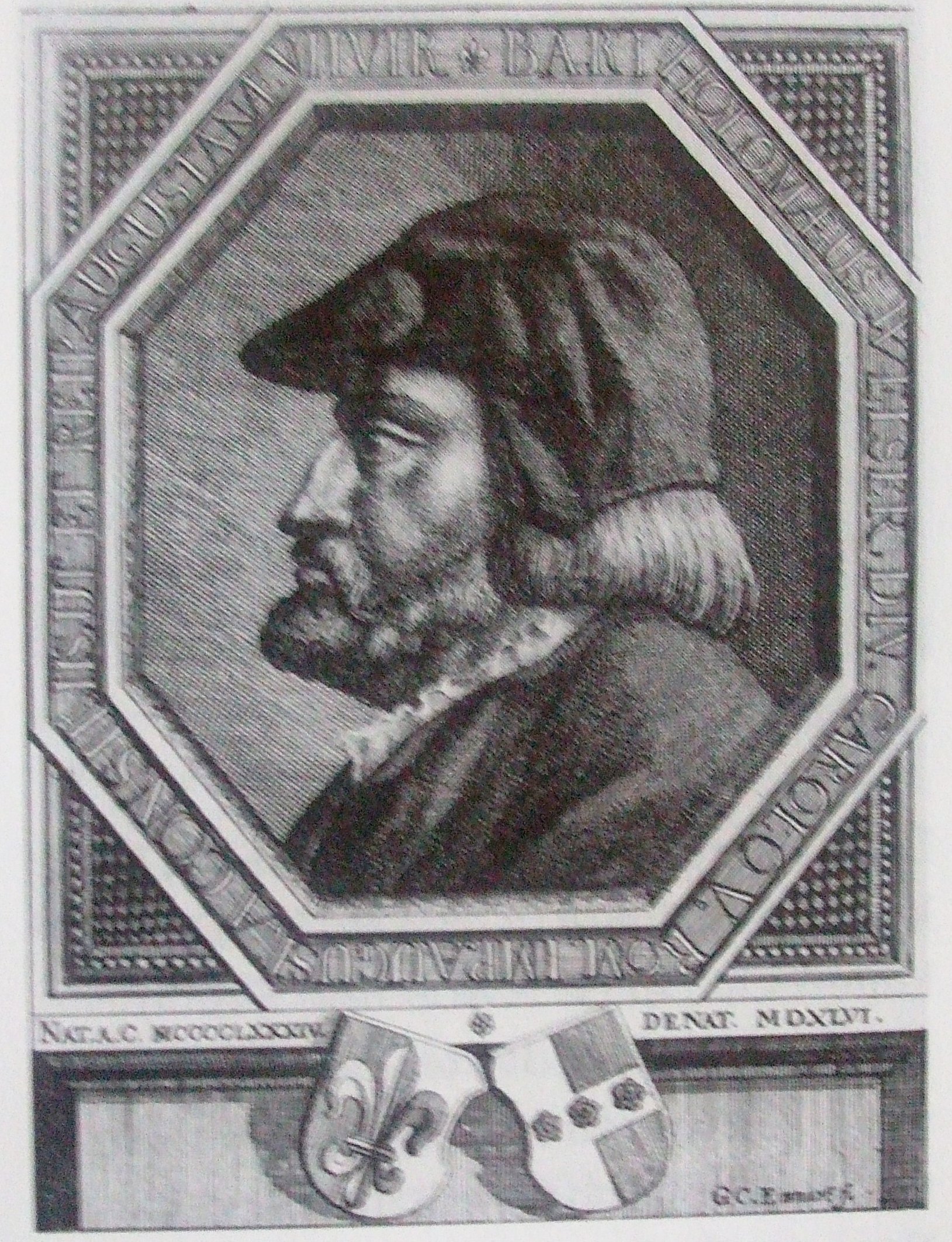 Die Verbindung zwischen Augsburg und Venezuela ist historisch einmalig. Im Jahr 1528 schloß die Augsburger Bankiersfamilie Welser einen Vertrag mit Kaiser Karl V. ab [Die Abbildung zeigt den Boss Bartholomäus V. Welser 1484-1561]. Sie erhielten die Kolonie Klein-Venedig in Südamerika als Pfand für Schulden der Krone. Das Gebiet entspricht weiten Teilen dem heutigen Venezuela. Die Welser schickten Gouverneure und deutsche Siedler über den Ozean. Ihr Ziel war die Suche nach dem sagenumwobenen Goldland »El Dorado«. Die Verwaltung war jedoch von Konflikten und Gewalt geprägt.