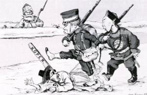 Und in der Tat fand Japan in England einen Unterstützer in seinen den europäischen Großmächten nachgeahmten Ambitionen auf dem asiatischen Festland, auf die es viel mehr Anspruch erhob, war dies doch ihm nahegelegen. Insbesondere ging es um Korea, die damals unter russischer Verwaltung stehende Mandschurei und das von den Kolonialmächten geschwächte China. Japan hatte schon im Krieg gegen die Qing-Dynastie 1894/95 darauf den Blick gerichtet.²